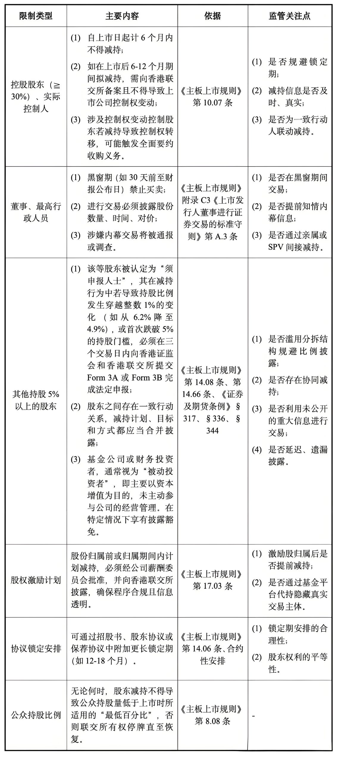 鉴于香港主板与创业板的上市规则在减持限制安排上大体一致,本文以下分析将以主板上市规则为核心展开。
