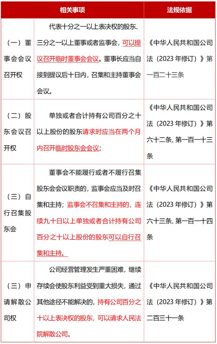 在持股达到10%的股东认为公司发生了需要召开会议的重大事项时,可以请求召开股东会或董事会会议,在特殊情况下可以自行召集股东会,并在公司经营管理严重困难无法通过其他途径解决时,申请法院解散公司,从而维护自身的合法权益。