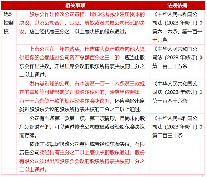 上市公司不同持股比例,对公司控制力、股东权利的影响