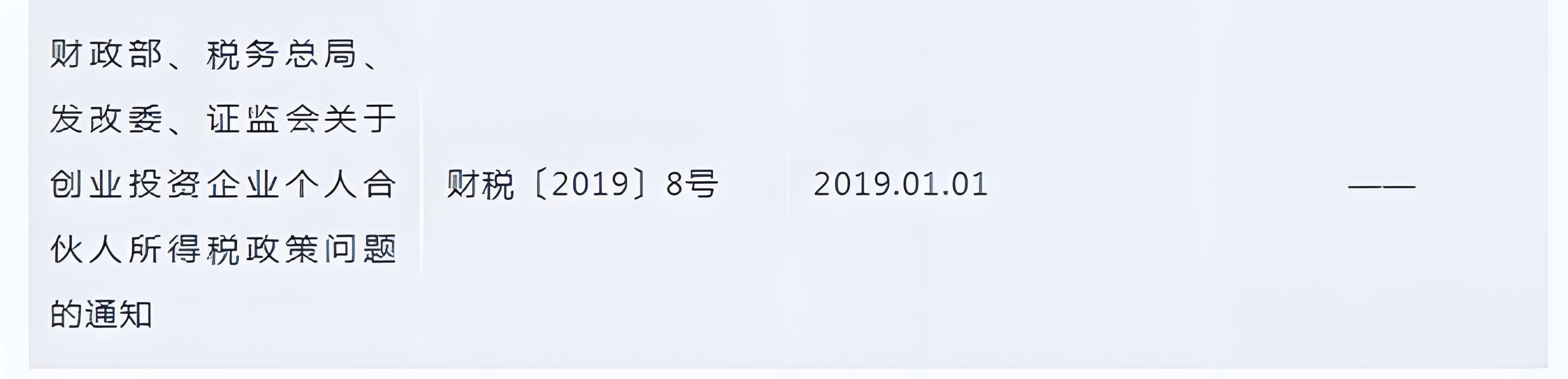 ②如果合伙企业备案为创投企业的,可选择〔2019〕8号文件的单一投资基金核算按照“按股权转让和股息红利所得20%缴纳个人所得税”。具体内容请看如下介绍。