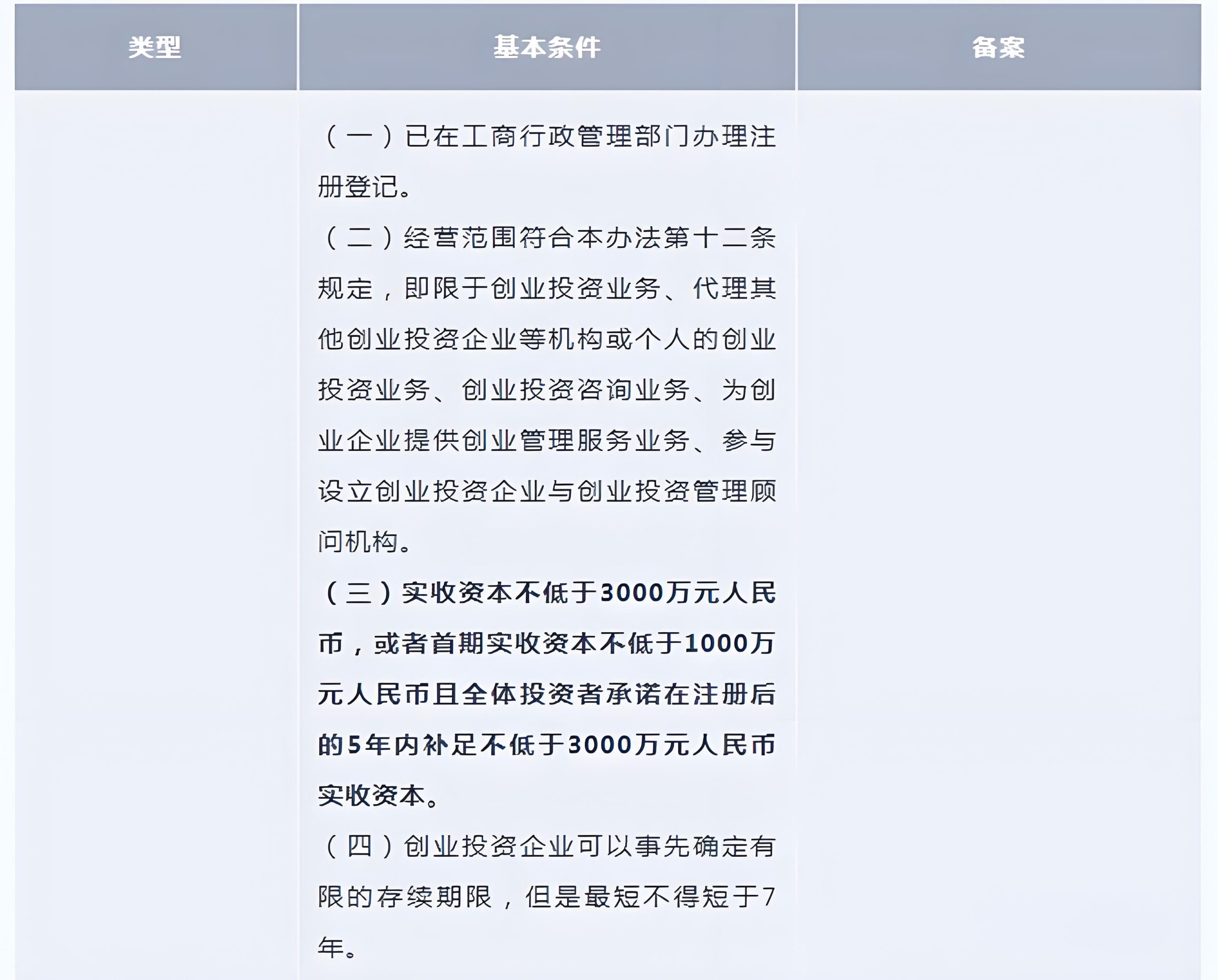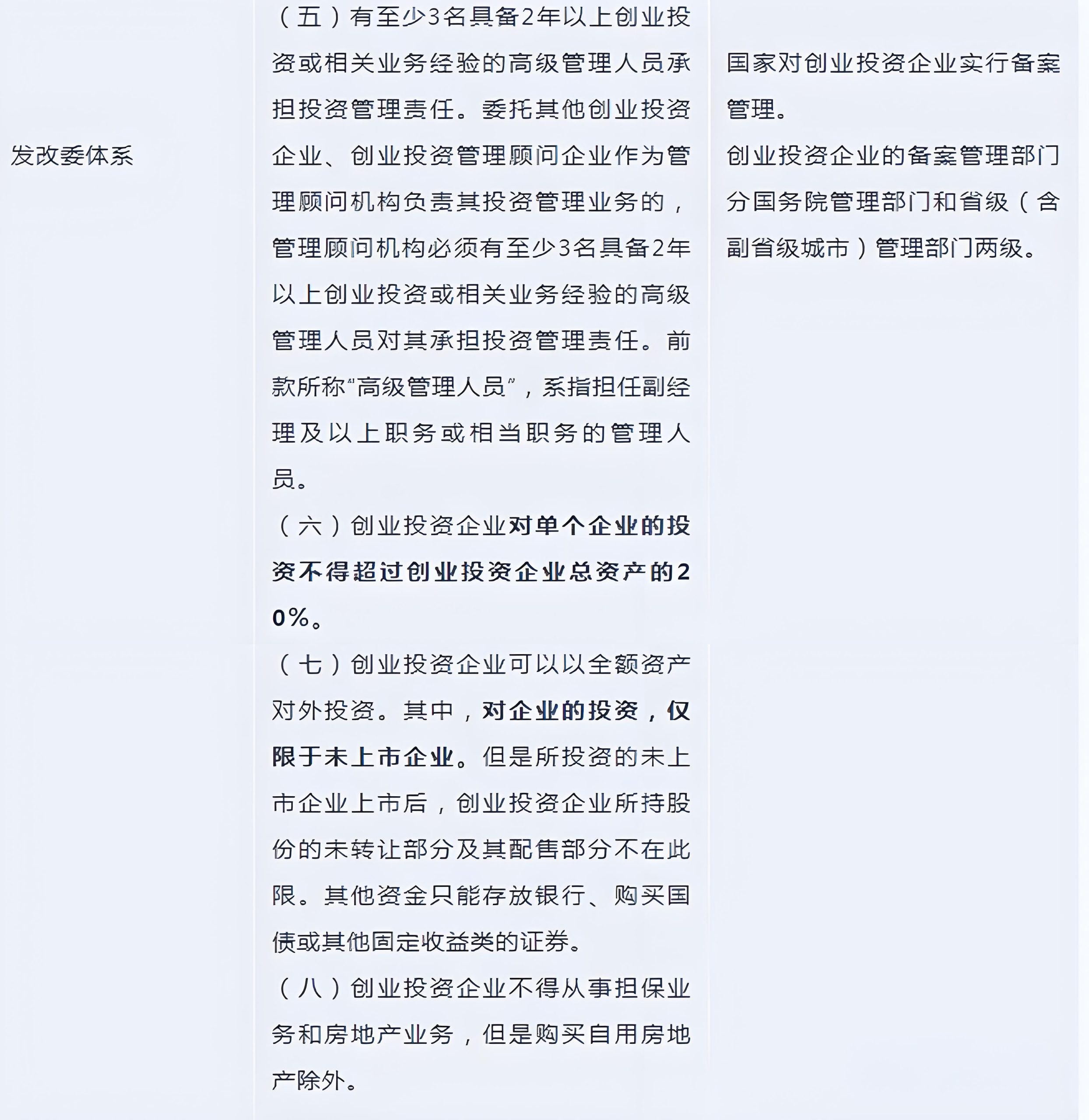 根据上述规定,发改委体系及证监会体系的创投基金的基本条件如下所示: