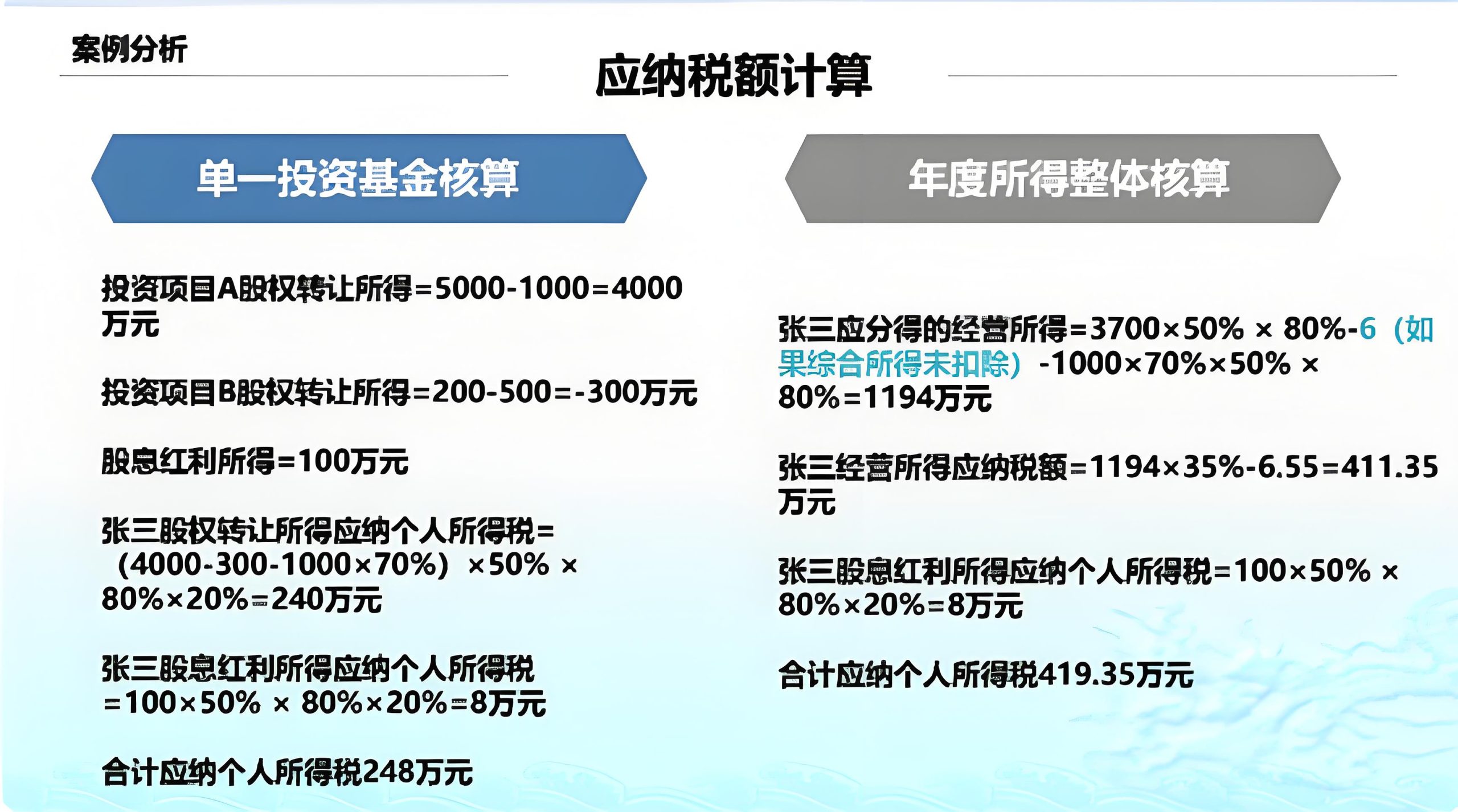 通常来讲,若创投企业所管理的基金中普遍预期可盈利,鲜有亏损,则可以考虑适用较低税率的单一投资基金核算方式;若创投企业所管理的基金前期回报不是很高、费用比较高,能够盈亏互抵降低应纳税所得额或有必要适用亏损跨年弥补的,则可以考虑适用年度所得整体核算方式,三年后收益高了可以再换成20%的税率。