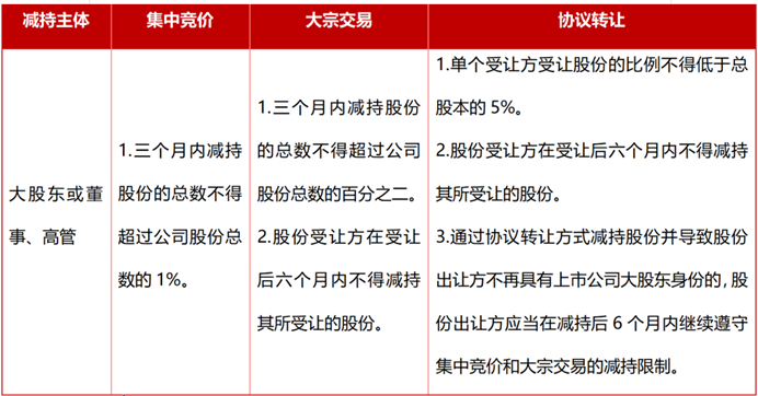 01. 上市公司股份减持的三种方式及限制