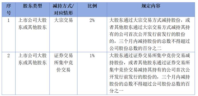 问题四:减持规则中,对减持的股份比例是否存在限制?