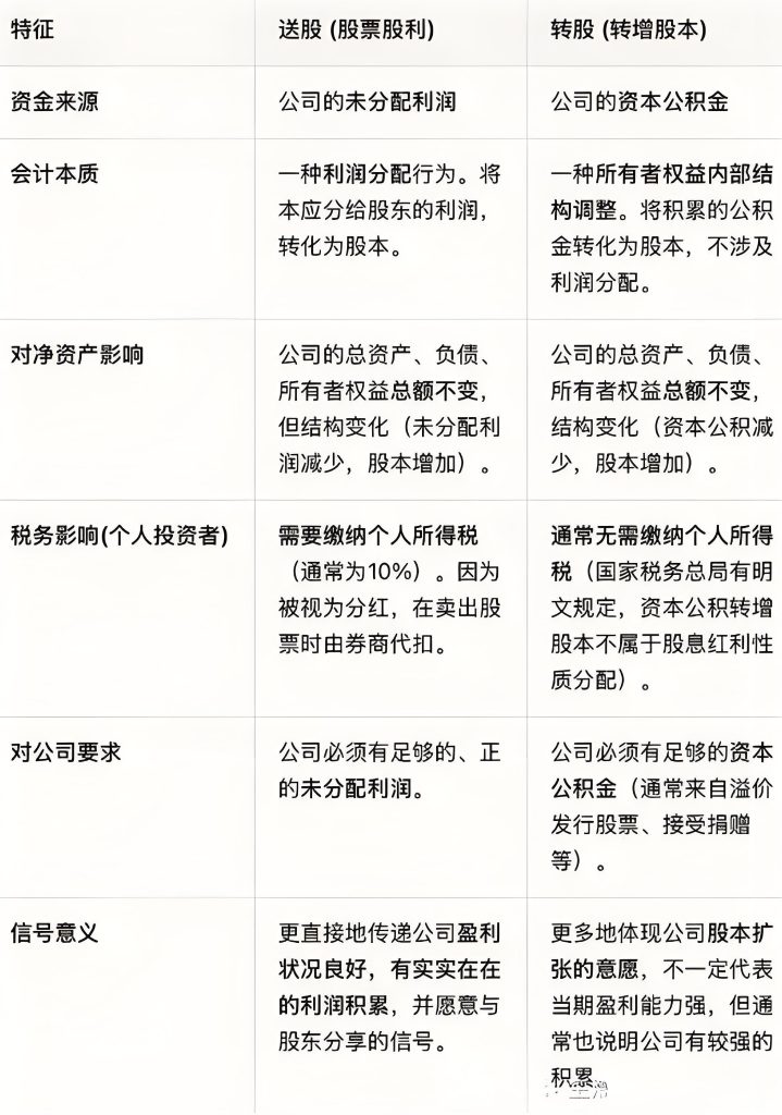 上市公司“高送转”中的“送股”和“转股”,虽然最终结果都是投资者手中的股票数量增加了,但它们的资金来源、会计处理和税务影响有本质区别。