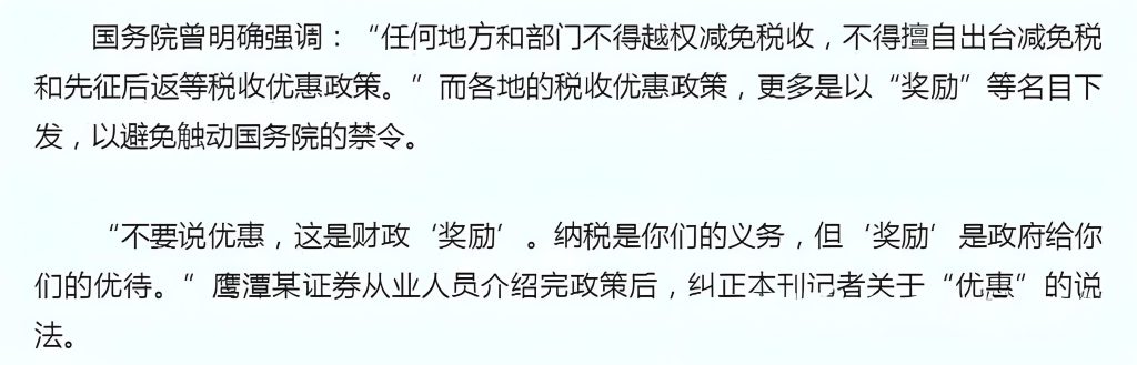你问我这税负符合国务院规定,看下面,人家不是“给你优惠”,是“奖励你”,我愿意。情真意浓地。
