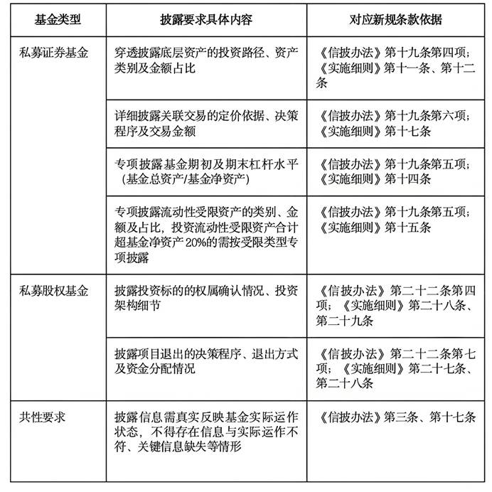 3.将追责场景覆盖所有投资类型与高风险情形,针对FOF基金、多层嵌套投资、跨境投资等特殊场景,信披新规设置刚性的穿透披露要求,要求管理人穿透至底层资产披露投资路径、资产类别、投资比例等信息,且被投资的私募基金、资产管理产品、特殊目的载体需配合管理人的穿透披露工作,未按要求配合的,相关主体也将被纳入追责范围;同时对高集中度投资、杠杆运用、流动性受限资产、关联交易等高风险场景,信披新规设置专项披露要求,未按规定专项披露的直接触发处罚,实现特殊场景与高风险情形的监管无死角。