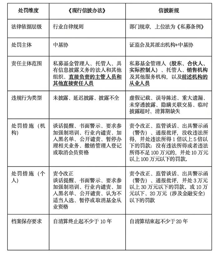 5.追责原则法定化:所有参与私募基金信披活动、信息提供、信息复核的主体,均需对自身行为对应的信披义务承担责任;同时坚持双罚制原则,对机构违规的,不仅处罚机构本身,还对直接负责的主管人员和其他直接责任人员单独追责,明确个人在信披活动中的法定责任。