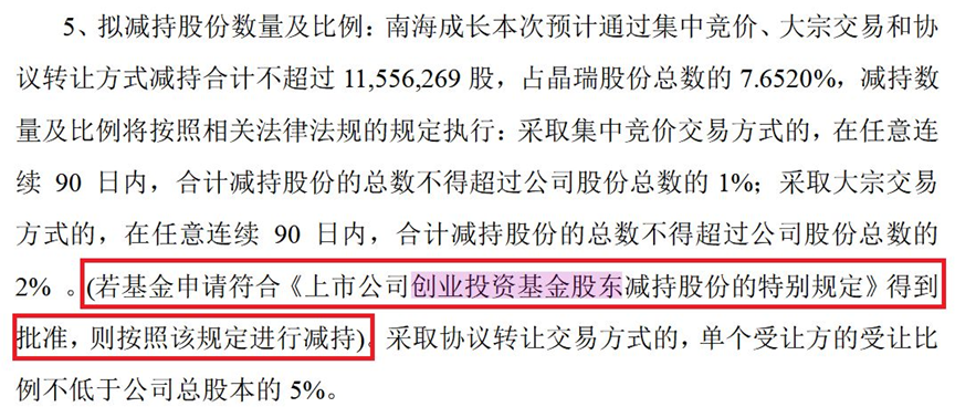 截至目前晶瑞股份尚未有相关减持的进展公告,所以还不能看出来南海成长是否已经申请通过中基协关于创业投资基金股东的认定。