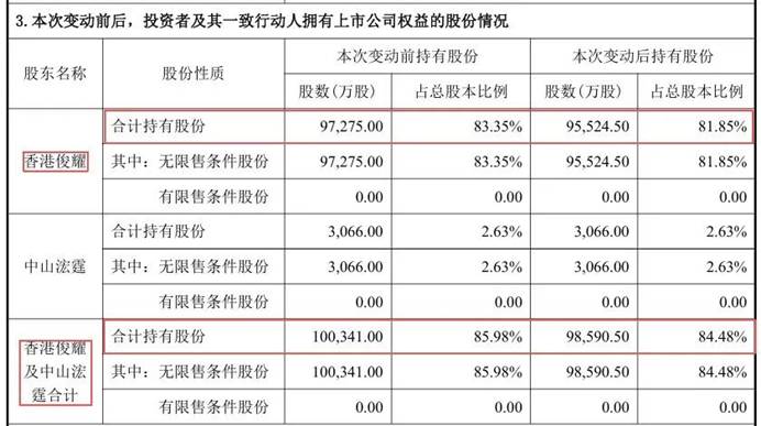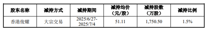 根据广东证监局下发的警示函内容,经查实,俊耀集团作为华利集团控股股东,于2025年11月12日通过深圳证券交易所大宗交易系统,减持华利集团股票1750.5万股,占公司总股本的1.5%。本次减持完成后,俊耀集团及其一致行动人中山浤霆鞋业有限公司合计持股比例由85.98%降至84.48%。