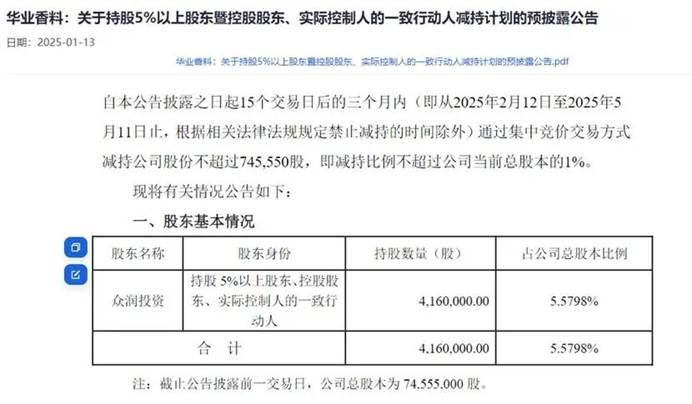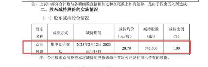 众润投资是控股股东、实控人的一致行动人,由实控人担任GP,1月公告减持1%。