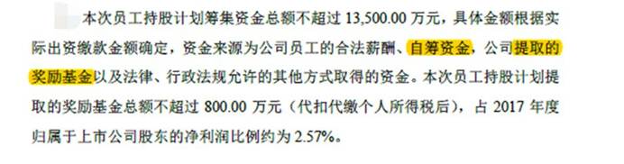 奖励基金额总额不超过800万元,员工自筹部分资金总额为不超过12,700万元。大部分还是员工自己的血汗钱啊,公司象征性的出一部分。当然了,苍蝇再小也是肉啊,还是要感恩公司,哈哈!