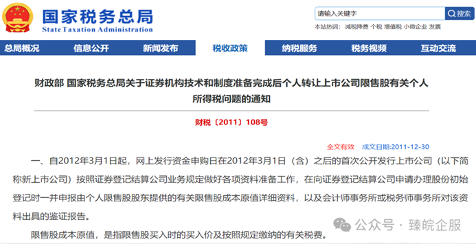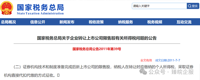 限售股减持–个税税种划分