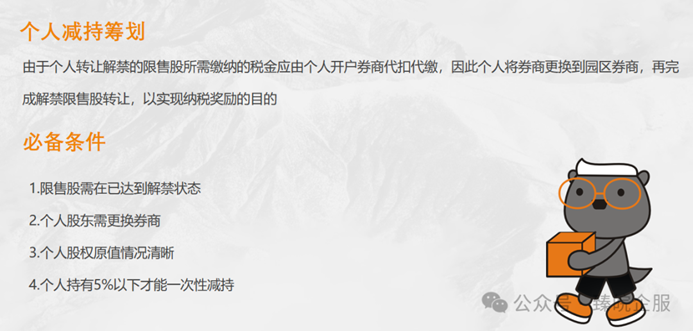 根据国家税务总局的相关规定,减持解禁后限售股产生的个人所得税由证券机构所在地主管税务机关负责征收管理,转让方为纳税义务人,转让方开户的证券机构为扣缴义务人。因此,个人股东通过变更证券开户地进而变更纳税义务所在地,从而可以选择有税收奖励政策的区域进行纳税。