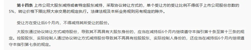15号指引规定特定股东减持即大股东以外的股东,减持其所持有的上市公司首次公开发行前发行的股份(以下简称特定股份)特定股份在解除限售前发生非交易过户,受让方后续减持该部分股份。