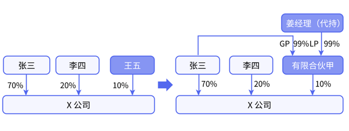 姜经理为代持合伙企业份额(其认缴合伙企业份额的资金来源于张三赠与),待公司实施股权激励时,将其代持份额过户给激励对象。