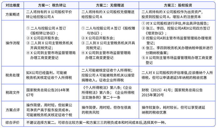 张三和李四将原个人持有的X公司股权调整为通过控股公司A间接持股,除了股权转让,是否还有其他方案呢?