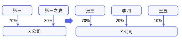 第三步:张三和李四将持有X公司股权注入控股公司A。