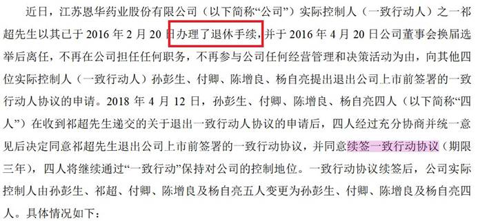 也有部分人员不再续签一致行动协议,剩下的人继续续签的,比如一致行动人有人退休: