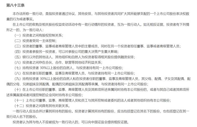 一致行动人的详细规定在《上市公司收购管理办法》第83条: