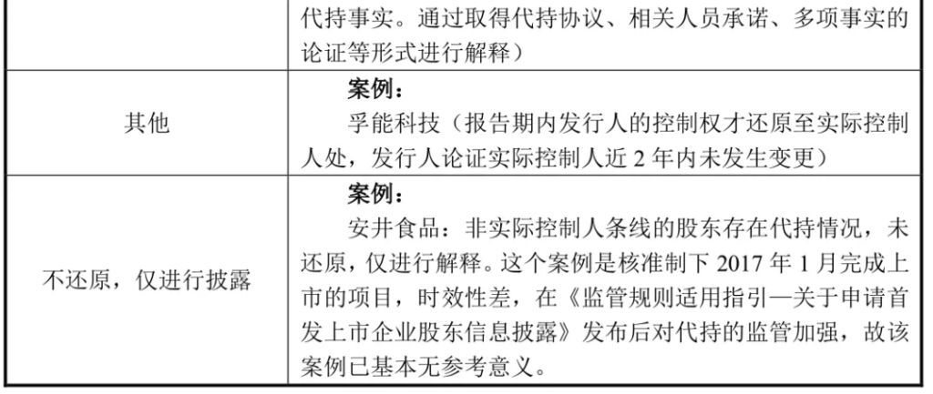 一般来说,股份代持行为只要在申报前依法解除,并不会对上市构成实质性障碍,监管机构的主要关注点包括是否存在尚未识别、披露的股份代持,历史沿革中存在的股份代持是否真实且彻底清理,以及是否存在通过代持还原行为来规避实际控制人认定等监管要求的情形。