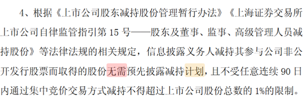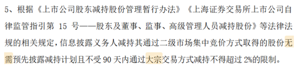 二、不涉及90天大宗交易2%的限制、无需预披露