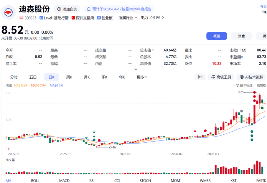 公开资料显示,2026年以来,迪森股份股价涨幅达31.08%。若按照公司3月20日收盘价7.55元/股计算,马革此次减持额度近3601.43万元