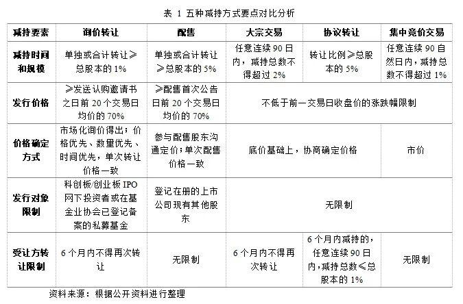 集中竞价、询价转让、大宗交易、协议转让、配售 六种常规减持方式操作规范及要点对比分析