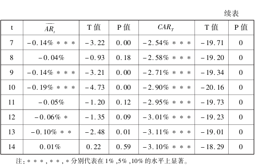 以下是样本股票在减持窗口期的累计收益(CAR)。从数据上看,内部股东减持超额收益率预测值趋近于零,结果显著性水平一般。总体而言,当内部股东减持交易区间较短(不超过 10个交易日,即两周)时,其已经很难从交易中获取超额收益。