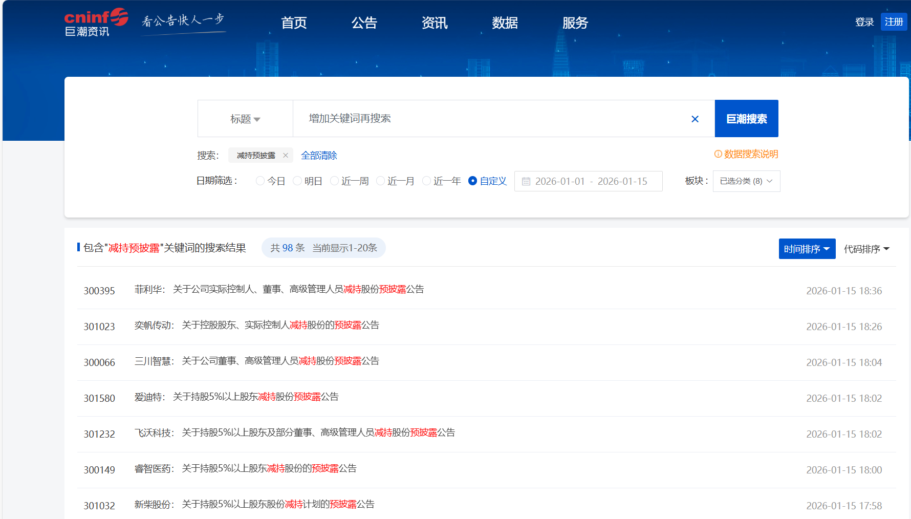 在巨潮资讯网简单搜索下开年这半个月,相关的减持预披露公告就达到100条: