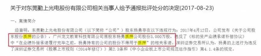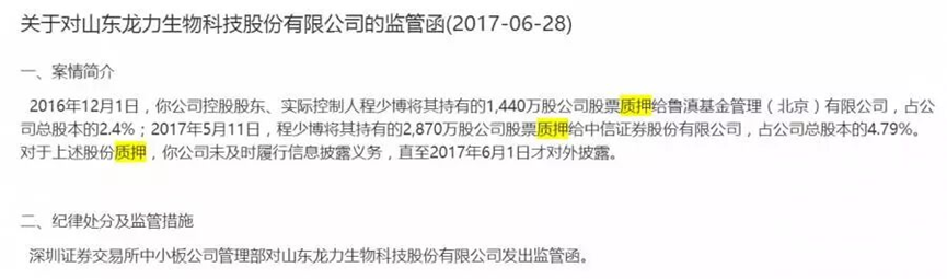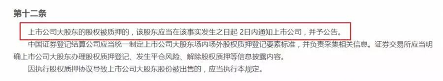 当然除了没有及时披露之外,如果股权质押违反了相关承诺也是要被处罚的